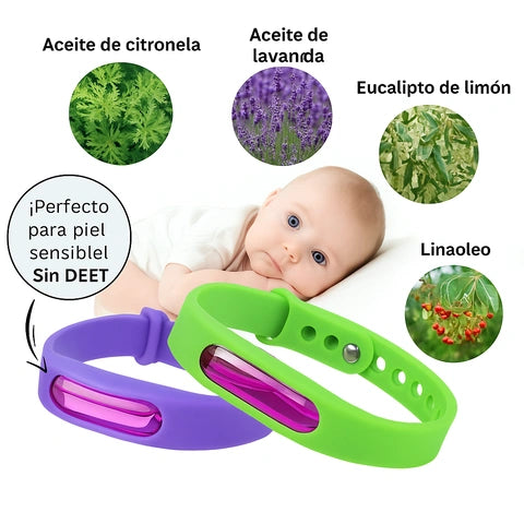 Nuestras pulseras antimosquitos están elaboradas con aceites esenciales 100 % naturales. Los ingredientes principales incluyen aceite de eucalipto, aceite de lavanda y aceite de parafina, conocidos por sus propiedades repelentes naturales de mosquitos. Estos aceites no contienen químicos sintéticos y ofrecen una protección natural y eficaz.
